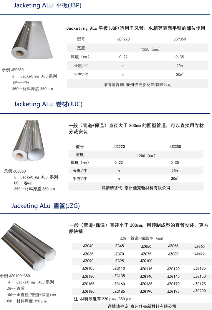 Jacketing ALu規(guī)格型號