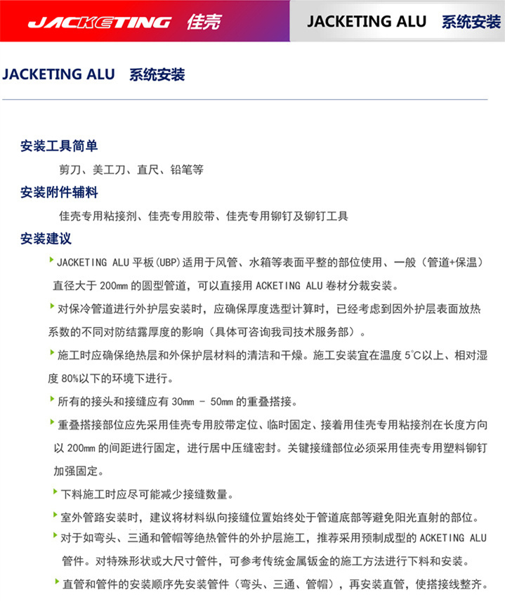 Jacketing ALu系統(tǒng)安裝